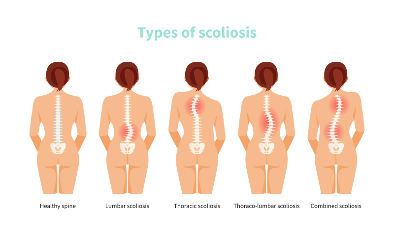 La escoliosis en la espalda puede localizarse en diferentes partes.